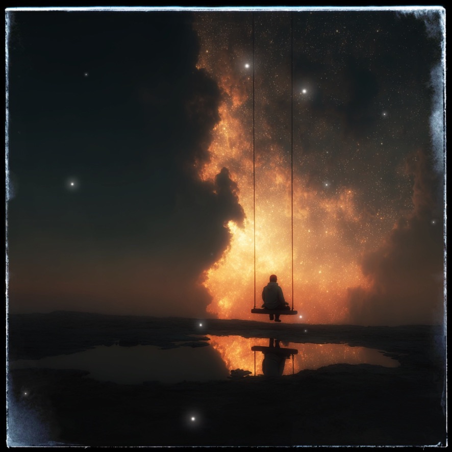 Wir sitzen am Rande unseres Abgrunds auf einer Parkbank, blicken in die unendlichen Weiten unserer Existenzen. Uns wird schwindlig angesichts der Grösse dessen, was wir nie erfassen können. Wir sitzen nebeneinander, schauen uns wortlos an und vergessen für einen Moment alles andere. In der tiefen Dunkelheit spannt sich über uns ein Nachthimmel aus Tausenden von Sternen. Die Welt könnte perfekt sein.