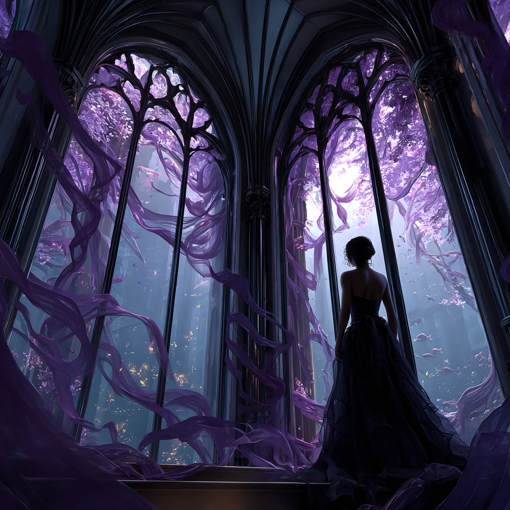 In the high corridors of a building I do not know, my footsteps echo unnaturally loudly. Stone arches line my path, and the view out into a frozen moonlit scene allows a little light. My limbs are tense and, without meaning to, I keep looking back over my shoulder. The cold dampness creeps into me, and I pull my coat tighter around my body, but to no avail. In the distance, I hear a longing cry. I follow it.